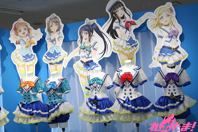 ▲「ステージコスチュームエリア」には、歴代のライブで使用された「Aqours」の衣装がズラリ。