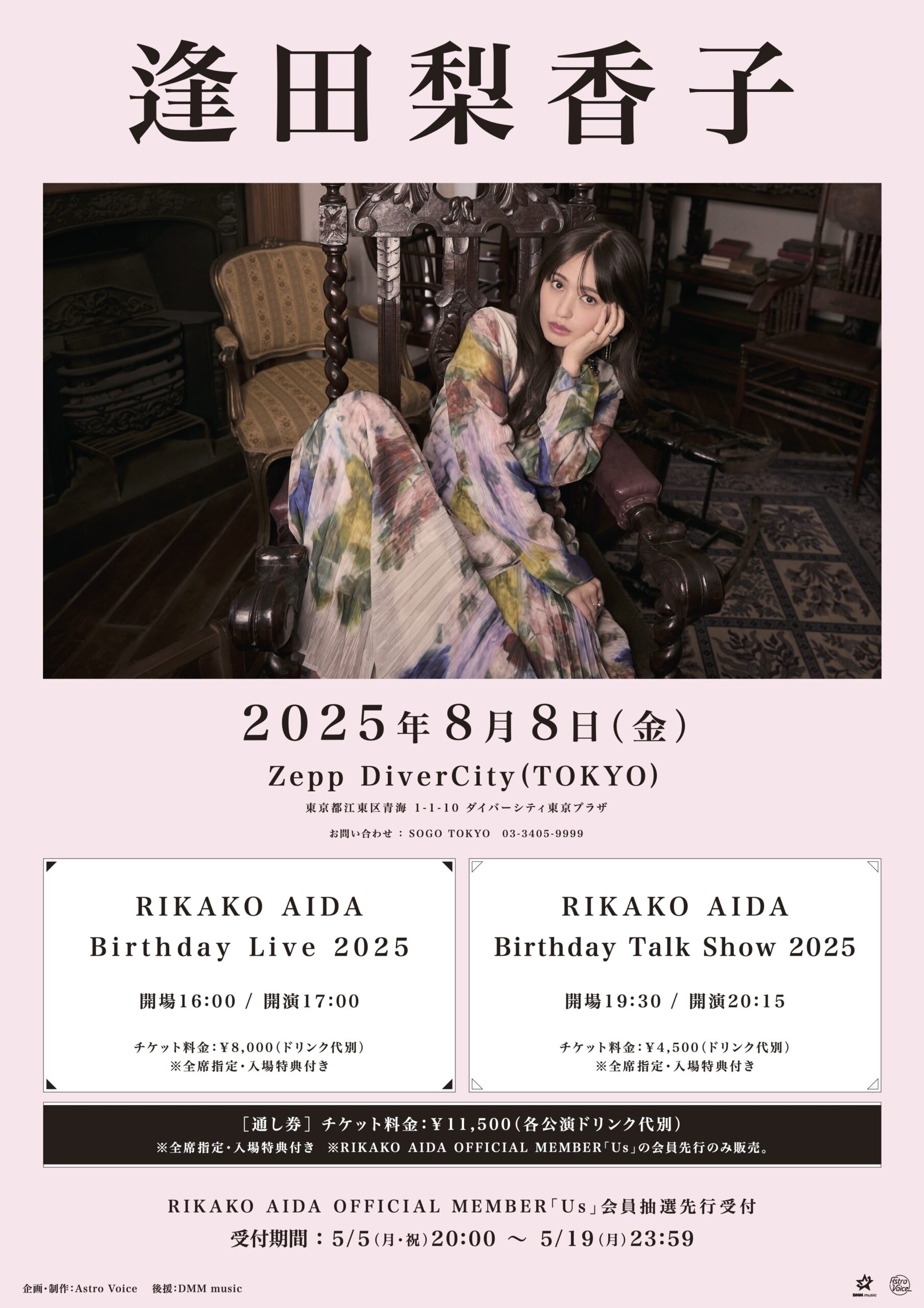 8月8日(金)に東京・Zepp DiverCityにて「RIKAKO AIDA Birthday Live 2025」、「RIKAKO AIDA Birthday Talk Show 2025」の2公演を開催することが発表された。