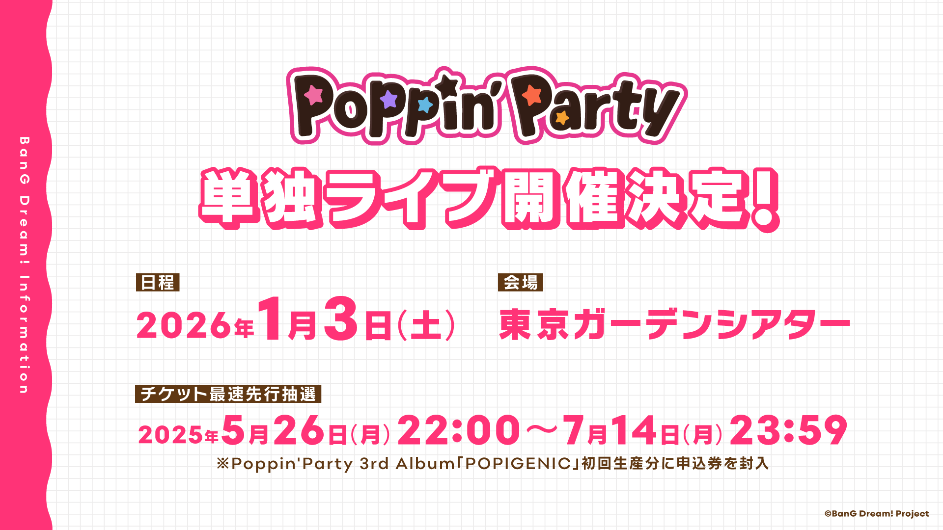 ※Poppin’Party 3rd Album『POPIGENIC』初回生産分に申込券が封入。