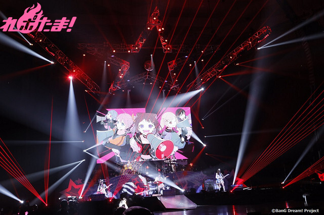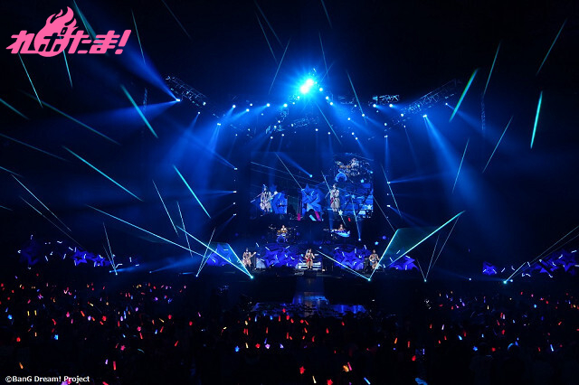 ライブは早くも中盤戦。アニメのOP映像に合わせ、アニメ『BanG Dream! 3rd Season』OPテーマ「イニシャル」、さらに3rd Singleから「ティアドロップス」を繰り出し、歌詞に合わせて青と赤のサイリウムが場内を染め上げ、ステージと客席が一体となるのを感じることができた。