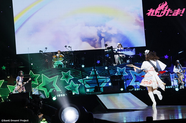 愛美さん、大塚さん、西本さん、伊藤さんがセンターステージに向かって駆けながら「キラキラだとか夢だとか ~Sing Girls~」、そして手で大きな輪を作りながら「CiRCLING」を披露すると、スマートフォン向けゲーム『バンドリ! ガールズバンドパーティ!』のゲーム画面をほうふつとさせる映像で物語がつづられた。