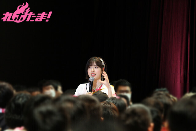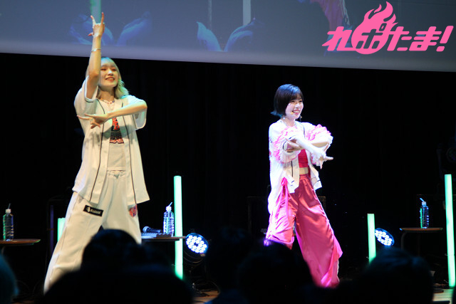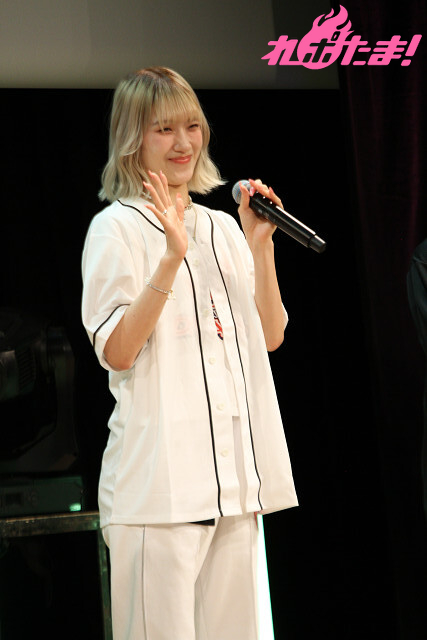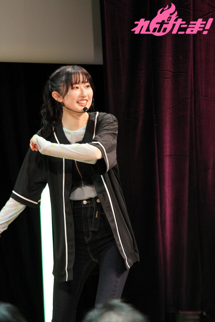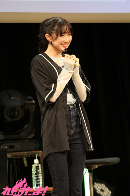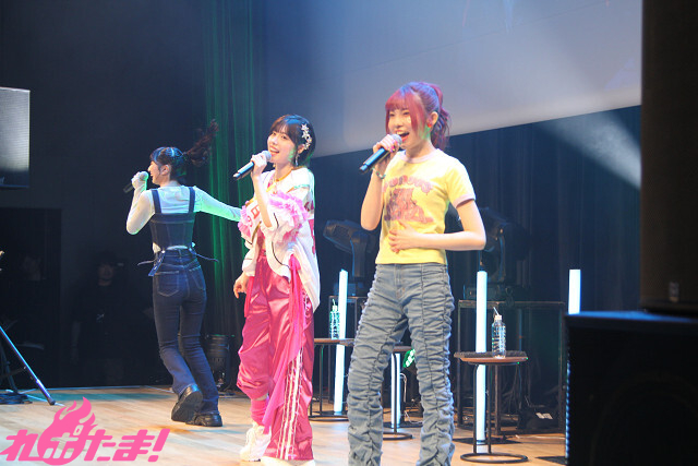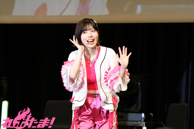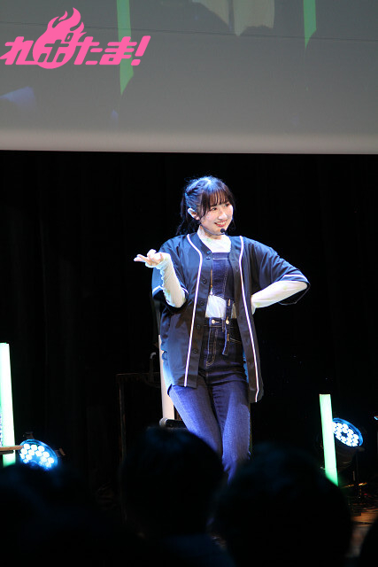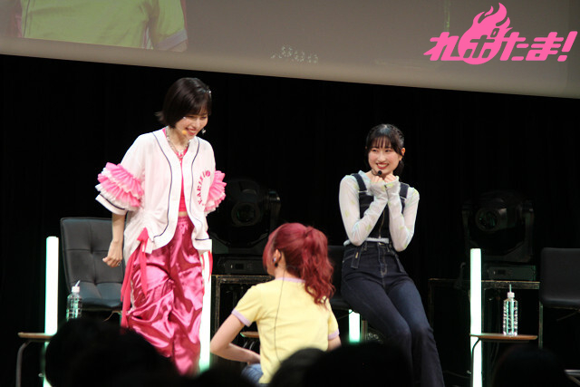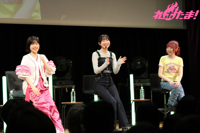 2曲目は、ふたたび登壇した涼本さんと峯田さんから「“本日の主役”タスキ」をかけられた礒部さん。3人でオーイシマサヨシさんの「主人公になろう!feat.鈴木愛理」を楽しく歌唱し、「いつも聴いている大好きな曲を2人と一緒に歌えて最高でした!」と大よろこびの礒部さんだった。