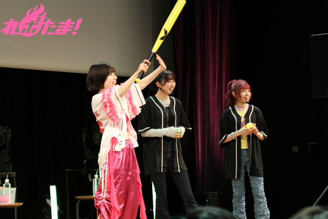 宮平さんから「リハーサルでは(3人ともバッティングがイマイチで)前方にしか飛ばなかったので(笑)、前列にいる人たちは気を付けてくださいね」との注意があったものの、ふたを開けてみると礒部さんのバッティングセンスが覚醒。遠くの座席にも見事な打球を飛ばし、大歓声を浴びていた。スコアも「20-14」で礒部さんが勝利!