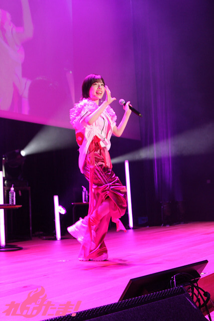 1曲目は、礒部さんが事前にSNSで匂わせていた松浦亜弥さんの「♡桃色片想い♡」をソロで披露。彼女が熱望していたコール&レスポンスもバッチリで、場内は大盛り上がり!