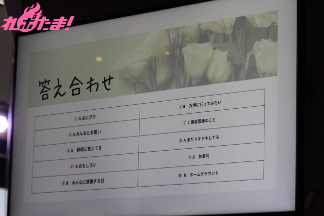 そしていよいよ結果発表! 10問中、8問正解した2名があいぽんとじゃんけんし、「あいこ」だった方が4代目の「ラリルれ王」となる(あいこ=野中藍と気持ちが同じだから)……のだが、なかなかあいこにならず、苦笑いのあいぽん(笑)