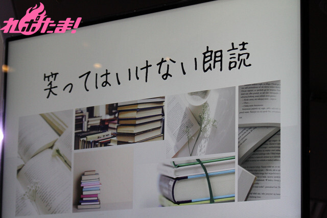 「我こそは」という参加希望者のなかから選ばれた3人がステージに上がり、「アツアツのグラタンを食べている感じで」、「聞いたことがない方言で」などのお題に従いながら、リレー形式で『ももたろう』を朗読していった。
