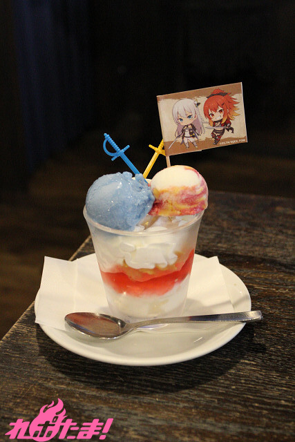アリューシアをイメージしたシトラスアイスとスレナの髪色のようなビビッドマーブルアイスをのせました。
