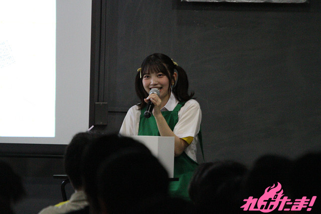 ここで、日向さんは一時退場。ステージ上のスクリーンで「DayRe:」のデビュー曲「DeaRy Days!」のMusicVideoが紹介されたあとは、緑色のエプロンを着用した日向さんがふたたび登場! かねてからやってみたかったという「コントコーナー」がスタートした。