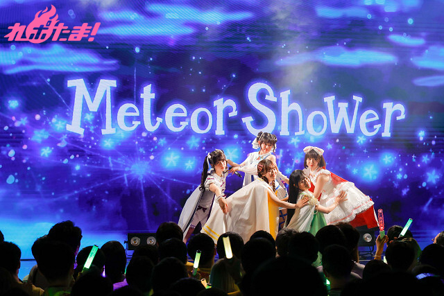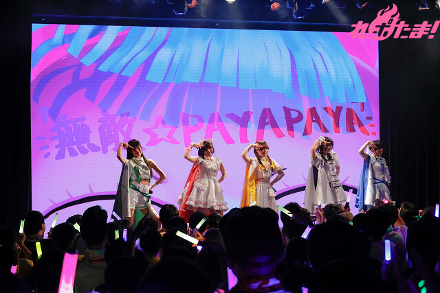 コミカルなダンスが特徴的な「無敵☆PAYAPAYA」を歌い終えると、アニメのダイジェストシーンがスクリーンに映し出される。チョコのバースデーを祝ってオリジナルソング「ハピハピハッピーバースデー」を歌うシーンでは、客席も一緒になって盛り上がり、間髪入れずに第8話挿入歌「Meteor Shower」を本邦初披露! 本公演の一つのヤマを迎えた。