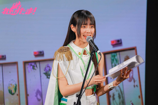 最初のMCでは咲川さんと三波さんがお互いの演じたキャラクターのキメ台詞を使ってあいさつをし、集まったファンたちを盛り上げた。作品の舞台である前橋から駆けつけた参加者も多く、笑顔で感謝を伝える5人。