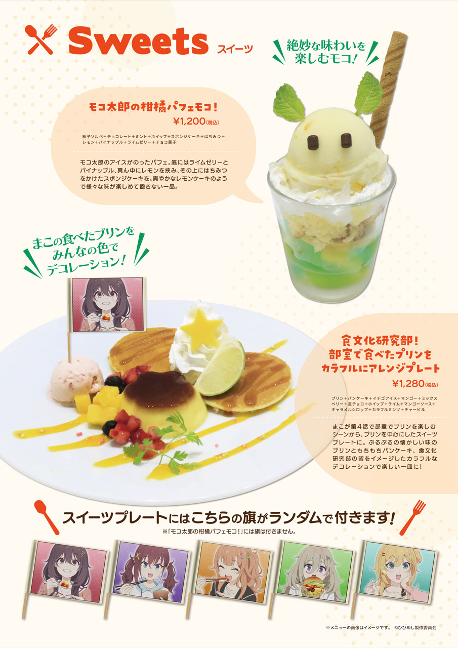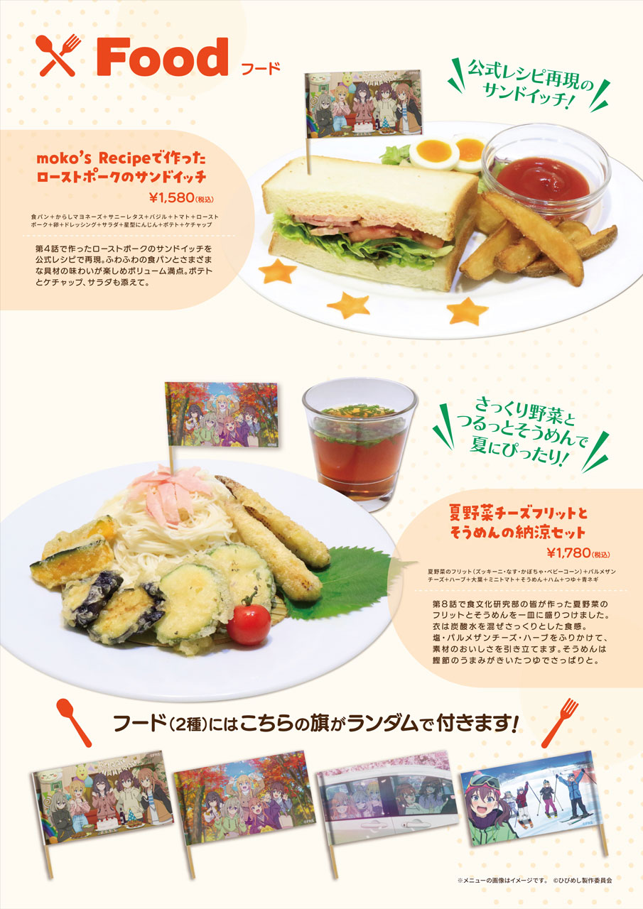 作中に登場したメニューの再現や、まこたち「食文化研究部」のメンバーをイメージしたドリンクなどをご提供!