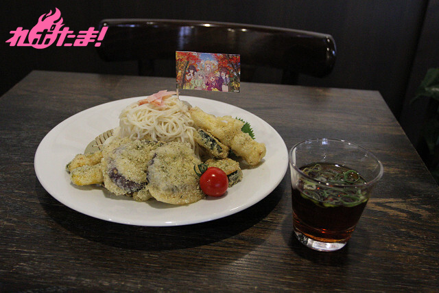 第8話で食文化研究部の皆が作った夏野菜のフリットとそうめんを1皿に盛りつけました。