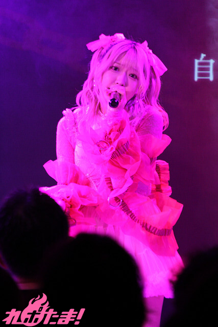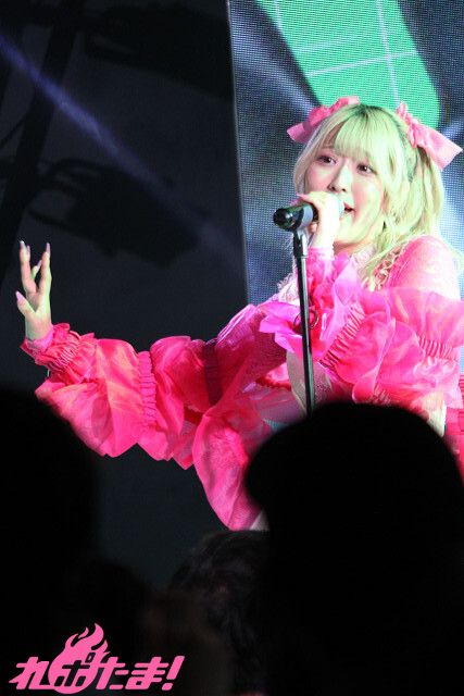 さらにここからはソロパートに突入! 先陣を切ったのはMisato。カラフルに変わっていく光に照らされて「ゆめゆめ」を歌唱すると、Hitomiは紫色のペンライトの海を前に「アイコトバ」を披露した。