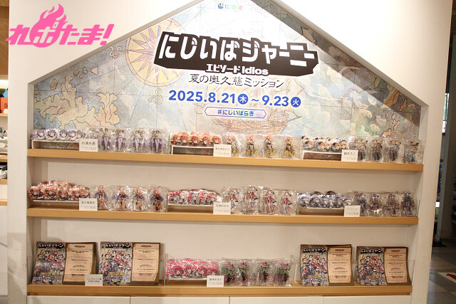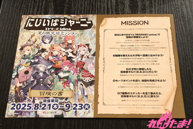 「にじいばジャーニー」の冒険のはじまりの地、東京・銀座の茨城県アンテナショップ「IBARAKI sense」では、Idiosのメンバー7⼈と茨城県の誇る特産品をモチーフにしたコラボスイーツや撮りおろしイラストを使用したアクリルスタンド・缶バッジを販売。