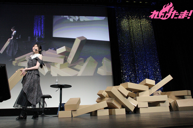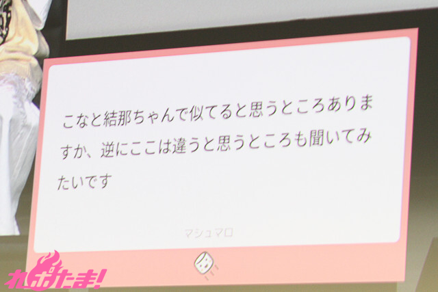 先攻の月音さんが引いたのは「アニメが好きなギャル」。「『ダン●ンロンパ』のゲームがほしい~」とギャルっぽく(?)披露。一方、結那さんが引いたのは「ガールズバンドのボーカル」。彼女は実際にガールズバンドのボーカルを務めており、持ち前のトーク術で客席をあおっていた。