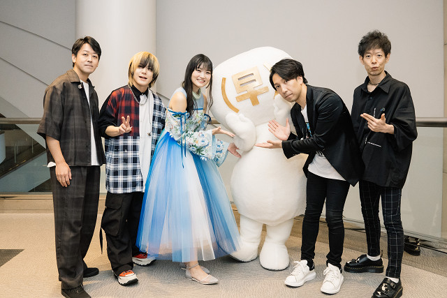 場内が真っ赤なペンライトで埋め尽くされた「視紅」から「Installation」「その声が地図になる」と高速のロックナンバーで観客の拳と声を上げさせると、デビューシングル「やさしい希望」は当時のMVをバックに歌唱。「Jewelry」では再び(早)ぬいの着ぐるみが登場し、場内を周回して観客を盛り上げると、早見の<大丈夫>という呼びかけに応えるかのように大合唱となり、会場は多幸感で満ち満ちていった。