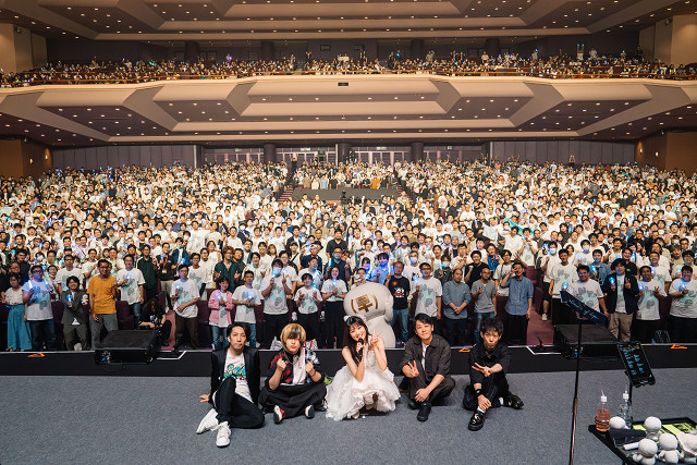 これまでのジャケットやアーティスト写真、ライブ映像などをまとめたメモリアルビデオに続いて、画面に映っていたグッズの1つである“10thゴールド(早)ぬい”がスクリーンを飛び出し、等身大の着ぐるみとなって会場に現れた。観客とコール&レスポンスを繰り広げたあと、「僕らのアンサー」から「透明シンガー」「残滓」と激しく攻撃的なバンドサウンドによって観客の高揚感は一気に上昇。