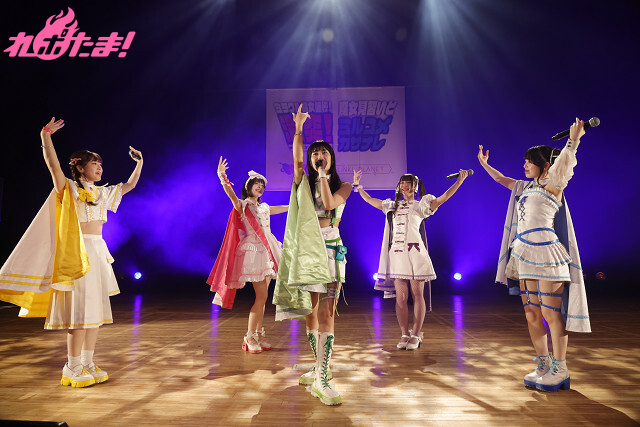 まずはアニメ『前橋ウィッチーズ』OP主題歌「スゴすぎ前橋ウィッチーズ!」をあいさつ代わりに披露。5人のイメージカラーが客席で躍った。続く「絢爛SHOW TIME!!」では力強い歌声で客席を魅了。作品の世界観にオーディエンスを引き込んでいた。