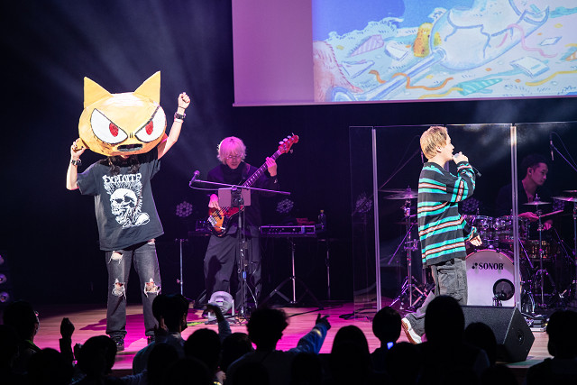 続く先日リリースしたアルバム『First Contact』より披露した新曲「1KWYL」では、初披露にもかかわらず、N-Roachが堂々とコール&レスポンスを要求。それにしっかりと応えようとする観客の姿からも、すでにステージとの一体感が生まれていることが伝わってくる。「一瞬で終わるので最後まで暴れましょう!」というMCの言葉通り、演奏の熱量はさらに加速。「変身」ではN-Roachがキャラクターの頭だけ被った姿に変身して会場内を歩き回り、ラストの「▷コンティニュー」では、全員が手拍子で応えるほどの多幸感に包まれていた。