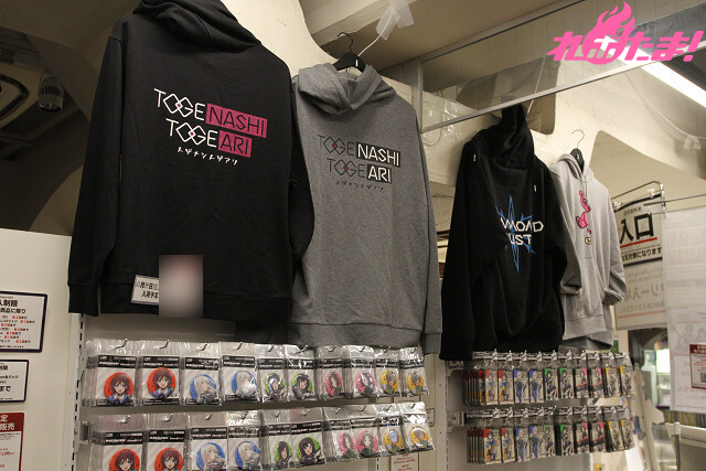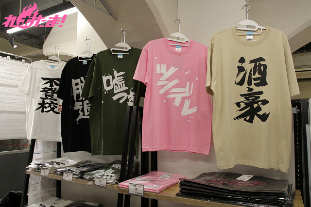 ▲先行販売グッズや、「文字入りTシャツ」などロングセラーのグッズがお出迎え!