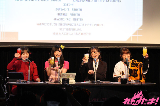 この日は4人をイメージしたコラボドリンク、さらに番組コラボフードが用意され、集まったファンと一緒にドリンクで乾杯!