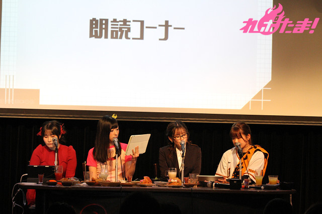 そんな声優らしさをアピールしたコーナーに続いて、4人の演技をさらに堪能できる「朗読コーナー」。「女子寮の夜はモンスター日和 ~バレちゃダメ編~」というお題の劇が展開した。