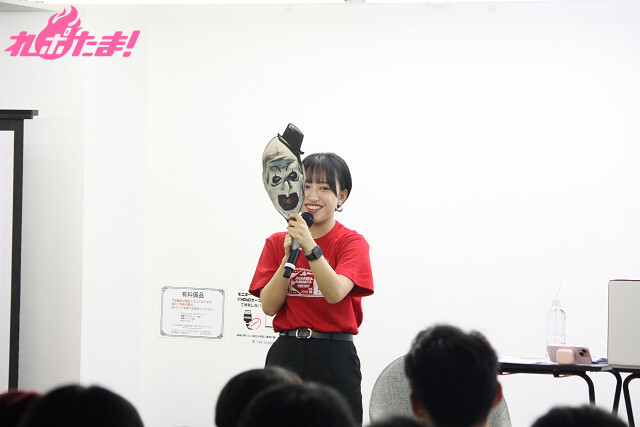 特にホラー作品『デリファー』のプレゼンでは、「入場特典」の不気味な仮面を手にしながら大熱弁。その力の入ったプレゼンに客席からはたくさんの「すぐ観たい!」の札が挙がっていた。