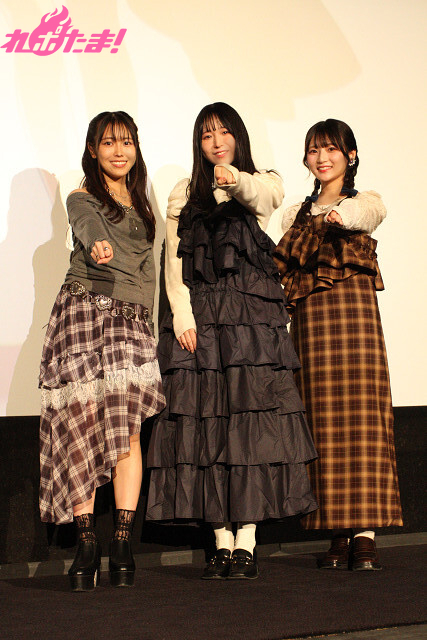 2025年4月26日・27日にKアリーナ横浜で開催された合同ライブを再編し、スクリーンで体感できる劇場版「MyGO!!!!!×Ave Mujica 合同ライブ『わかれ道の、その先へ』 LIVE FILM」が2025年10月18日(土)より公開! キャスト登壇の舞台挨拶付き上映が11月3日(月・祝)、東京・イオンシネマ板橋で開催され、上映前に『MyGO!!!!!』メンバーの羊宮妃那(高松 燈 役)、立石 凛(千早愛音 役)、青木陽菜(要 楽奈 役)による舞台挨拶が行われた。