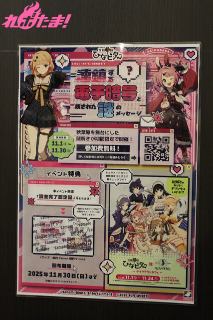 11月1日(土)から開催中の、秋葉原を舞台とした謎解き、「音戯探偵ひなビタ♫-連鎖する電子暗号と残された謎のメッセージ-」と一緒にお楽しみ下さいね♪