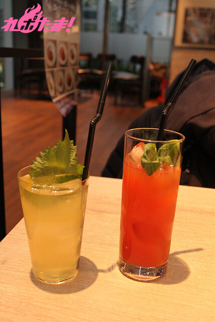 ▲紫蘇とうま味出汁のバージンモヒート(左)、クラマトジン(右)