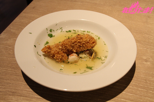 この日振舞われたのは、作中で岳が料理した「クスクスのタブレ」、「イタリアのクスクス・トラパネーゼ」、「スパイスとナッツのトンカツ」の3品からなるコース料理「三位一体」コース。