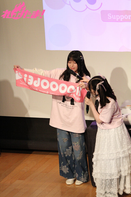 村上さんプレゼンツ、彼女の顔が大きくプリントされたTシャツ、「じゃーんゲーム」(さかさまにマフラーを掲げられたらポイントが入るという、羊宮さん考案のオリジナルゲーム)でも使えるマフラータオル、伊駒さんいわく「来年も一緒に過ごしてほしい」という気持ちを込めた「2026年 スケジュール帳」、そして水野さんの汎用性が高い「フリースブランケット」がコミカルに紹介された。