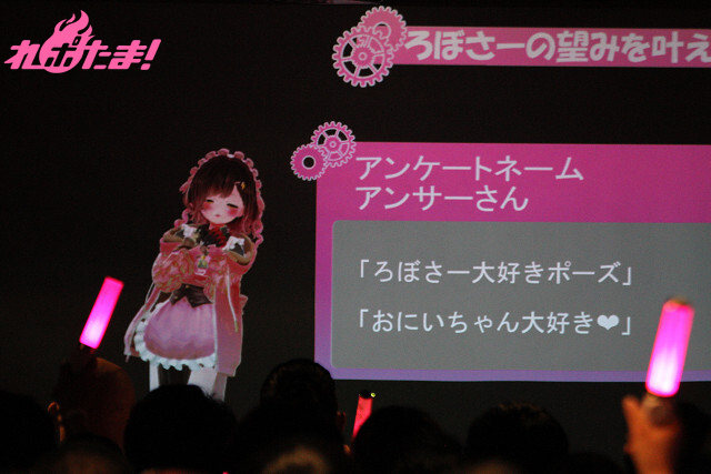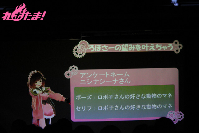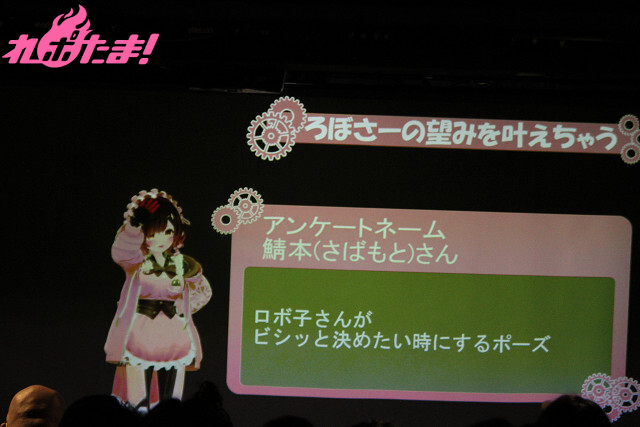 続いては「ろぼさーの望みを叶えちゃう」。イベントチケット購入者向けの「やってほしいポーズ」「読んでほしいセリフ」というアンケートに、マリオネットのごとく応えていくコーナーだ。