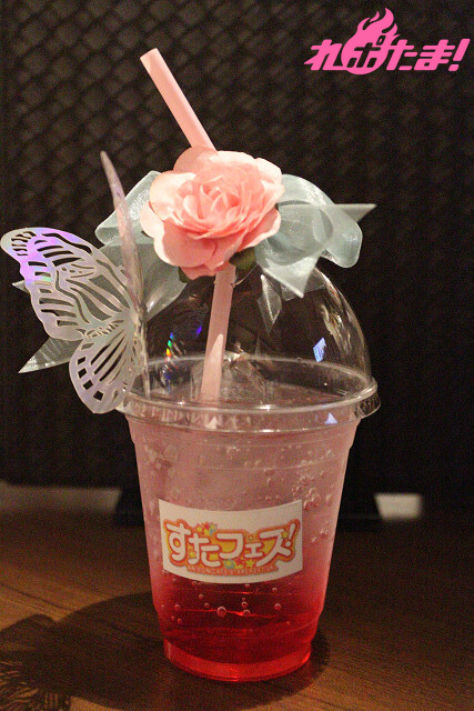 オープニングトークでは、このイベントのために制作したオリジナルグッズが紹介された。本人いわく「過去に黄色1色のペンライトを発売して以来」という「アクリルペンライト」や「アクリルキーホルダー」、さらに工藤さんいわく「微炭酸で、のどにもいいんです!」という、「薔薇」と「ちょうちょ」をあしらった彼女考案のオリジナルドリンク(はちみつレモン)などが紹介された。