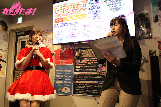 3曲目に披露したのは工藤真由 with ぷりきゅあ5の「プリキュア5、フル・スロットルGO GO!」。「みんなで一緒に盛り上がりたい曲です、パワーをください!」とオーディエンスのコールを受けながら元気いっぱいに歌唱し、ライブコーナーは終了……と、ここで、先ほどの企画でゲットした「5分の延長時間」を使って、クリスマスにまつわるカバー曲を披露! 竹内まりやさんの「すてきなホリデイ」を楽しそうに歌い上げた。