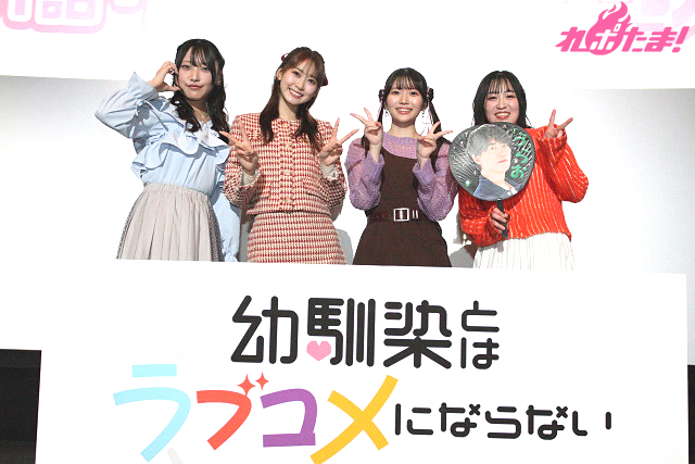 続く、作品関連の告知コーナーでは4人が歌うオープニングテーマ「あいらびゅ♡」について紹介された。音楽クリエイターユニット HoneyWorksによる書き下ろし楽曲であるこの楽曲は題名通り、ポップでキュートでキャッチーなかわいい曲に仕上がっているそうだ。