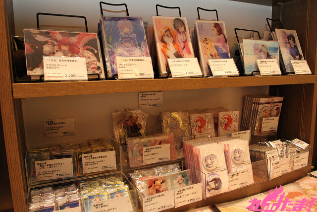 ▲「グッズ販売コーナー」には、人気作品のグッズが盛りだくさん!