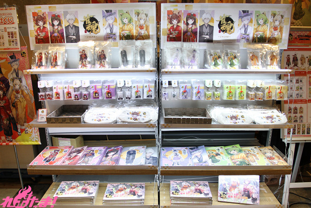 ▲お店を入ると、コラボグッズ売り場が展開。レジカウンターでは「コラボカフェオリジナル魂天神社くじ」(1回:税込700円)を引くこともできる。