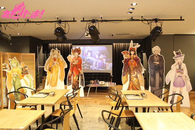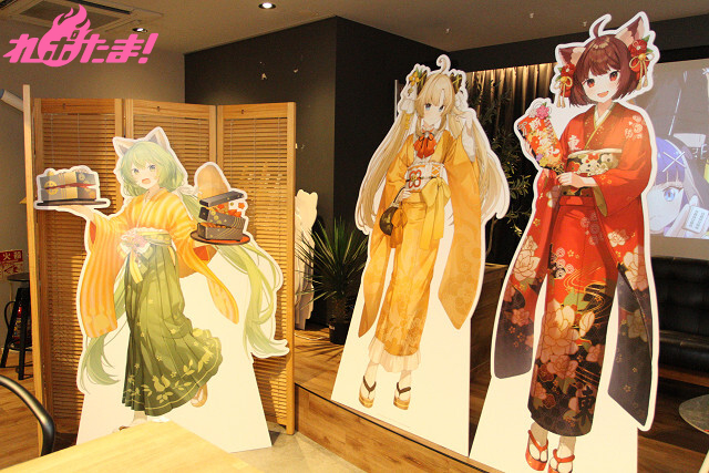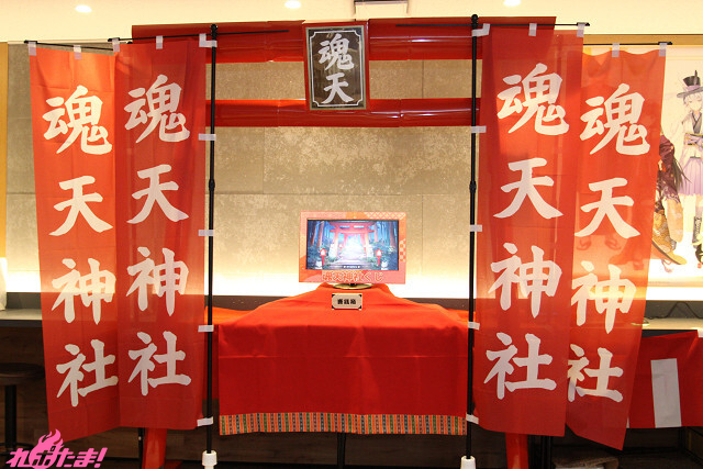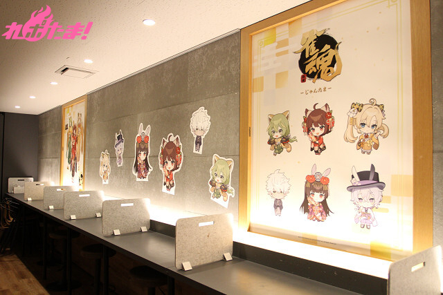 ▲店内の様子。雀士(キャラクター)たちの特大POPの展示や、コラボグッズおよび「コラボカフェオリジナル魂天神社くじ」でもらえる賞品の展示も!