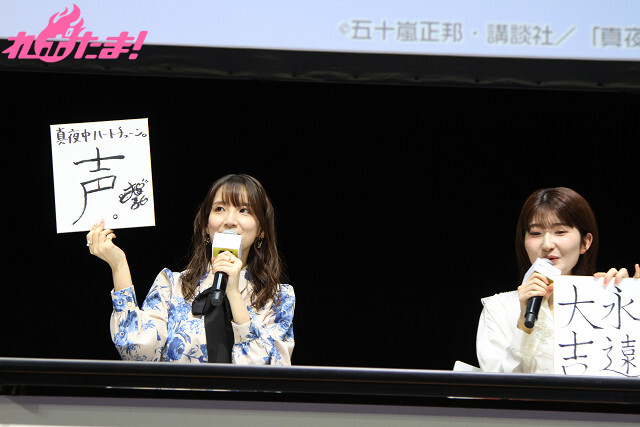 滑舌があまりよくないしのぶを演じた伊藤さんは「プロの声優として、精一杯かみました」と笑いながら回答。