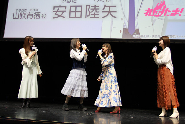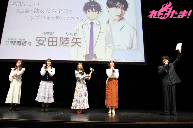 当日はメインキャストの山吹有栖役・安田陸矢、井ノ華六花役・瀬戸桃子、日芽川寧々役・大久保瑠美、霧乃イコ役・鈴代紗弓、雨月しのぶ役・伊藤美来が登壇し、作品の魅力を語った。
