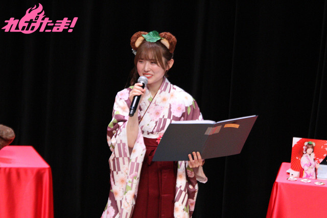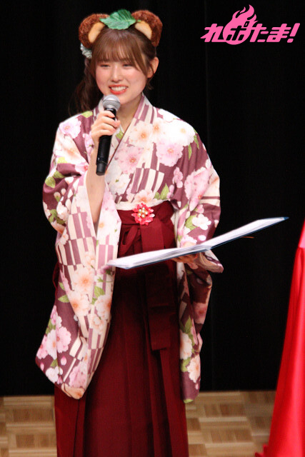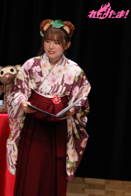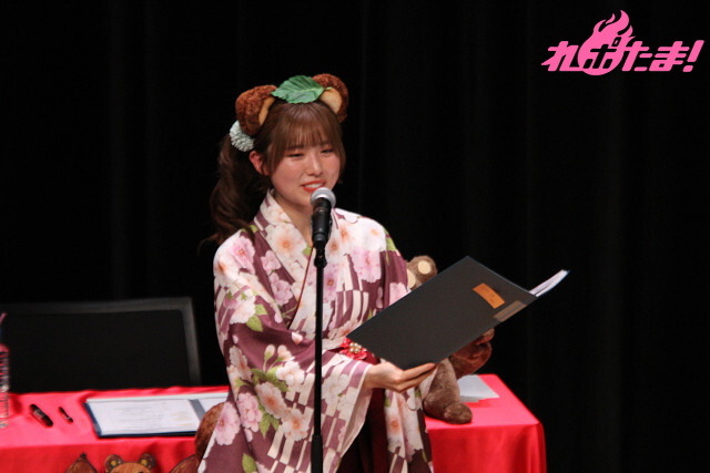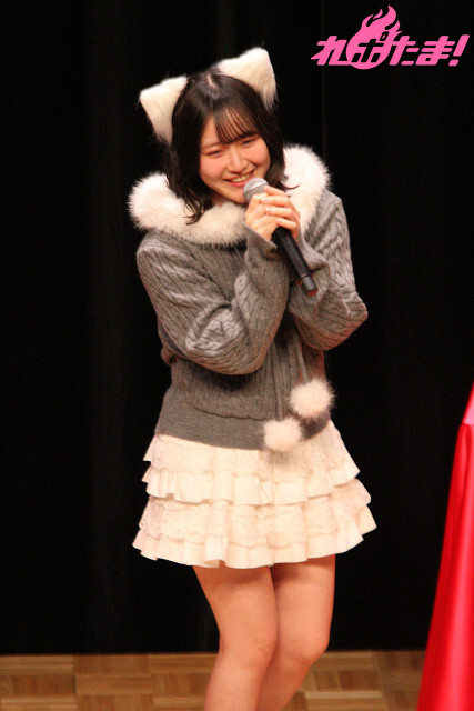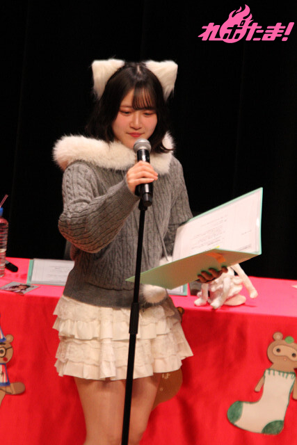 「『第2部』にはかわいいイレギュラーが紛れ込みます。とてもかわいいです!」と紹介し、ぽん下生たちの「な、なんだって~!」の声に呼び込まれ、猫耳姿のゲスト・遠藤璃菜さんが登場。
