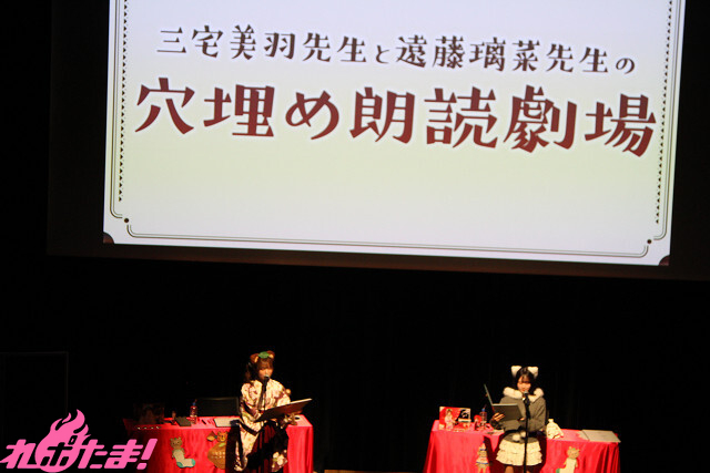 最後は、2人が登場する物語を生朗読する「三宅美羽先生と遠藤璃菜先生の穴埋め朗読劇場」。