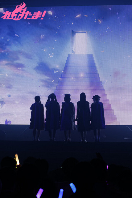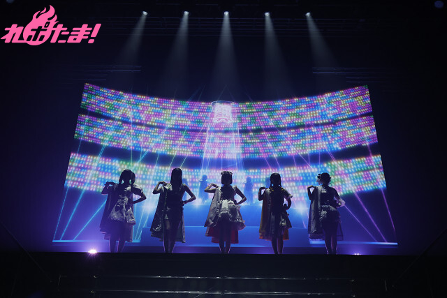 いくつもの公演を経て、逞しさを増していく姿に目を奪われていると、ライブTシャツに白いスカート姿の5人が登場! ステージいっぱいに広がり初披露の「激情≒愛情」を歌唱すると、力強いダンスパフォーマンスとともに「花たちはどんな夢を見る」を熱唱した。