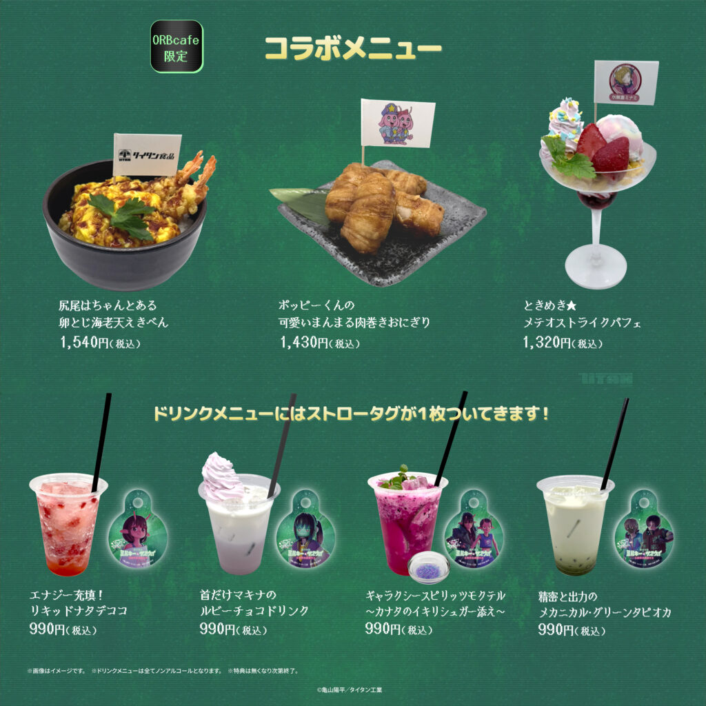 作品の世界観をイメージしたオリジナルメニューや、限定描き起こしイラストを使用したグッズなど、ファン必見のコンテンツを多数取り揃えている。