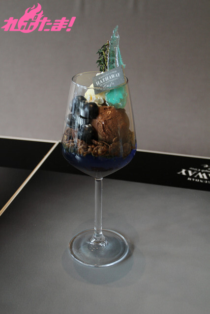 『機動戦士ガンダム 閃光のハサウェイ キルケーの魔女』のキービジュアルをイメージした、深い水の下に引きずり込まれそうなパフェ。