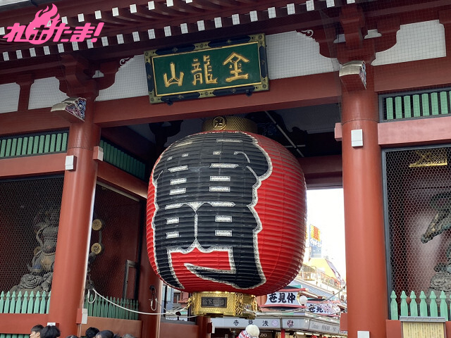 ▲今回の取材は「雷門」からスタート! 見事に晴れ渡った空を見ながら、各スポットへと出発!