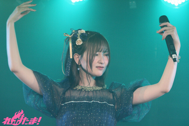 続くMCでは「『昼の部』でお伝えし忘れてしまいましたが(笑)、こちらも衣装さんが作ってくれました!」と、頭に輝く髪飾りを指差しながらうれしそうに話す七瀬さん。その場で一回転し、よろこびを表現していた。