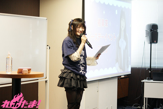 大きな歓声と拍手に包まれながら「橘 美來」と漢字で書かれたバースデー記念グッズの紺Tシャツ姿で登場した橘さん。「みなさんと一緒に過ごせるこの時間、今から楽しみでしょうがない!」と初のソロイベントにワクワクを隠し切れない様子。
