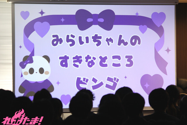 最初のコーナーは「みらいちゃんのすきなところビンゴ」。事前に公募した、「ファンの考える“みらいちゃんの好きなところ”」を本人が予想。9つのマス目に書いた「私のここが好きなんでしょ?」と思ったワードと、ファンの回答を一致させ、パーフェクトビンゴを目指すという、ファンと相思相愛かどうかが試される企画となっている。